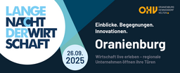 Die Lange Nacht der Wirtschaft findet am 26.09.2025 zum zweiten Mal in Oranienburg statt – von 16 bis 21 Uhr. Die Schwerpunkte bilden die TURM ErlebnisCity, die Gewerbeparks Nord und Süd, das Innovationsforum und die Oberhavel Klinik Oranienburg.